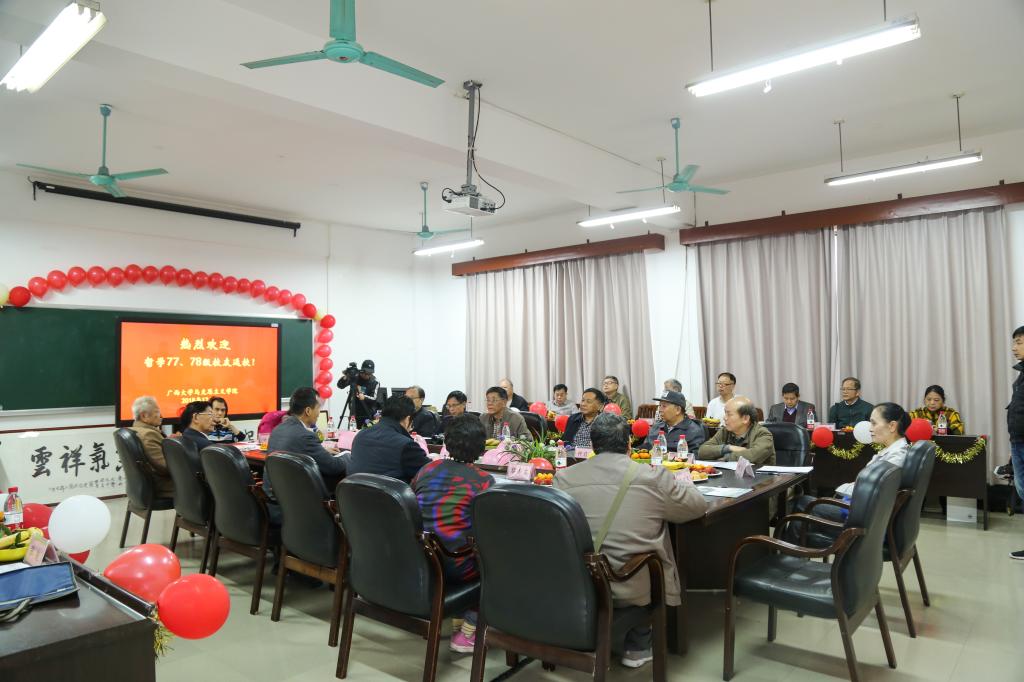 12月7日,九十周年校庆来临之际,哲学七八级员工返校参观座谈,座谈会由公司党委书记周瑞超主持,原哲学七八的班主任韦玖灵、任课教师甘自恒和黎秀英等老师代表,七七级和八二级部分员工代表,哲学系主任、副主任等30余人参加了座谈会。
